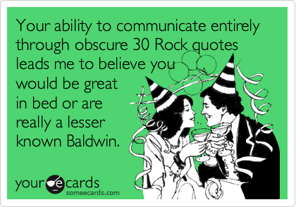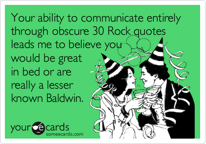 Generally I quote TV shows that have long gone off air – Seinfeld, The Nanny, Arrested Development, Scrubs, and 30 Rock are among my favorites, but anything with a lackluster following and short lived lifespan is game for the referencing.